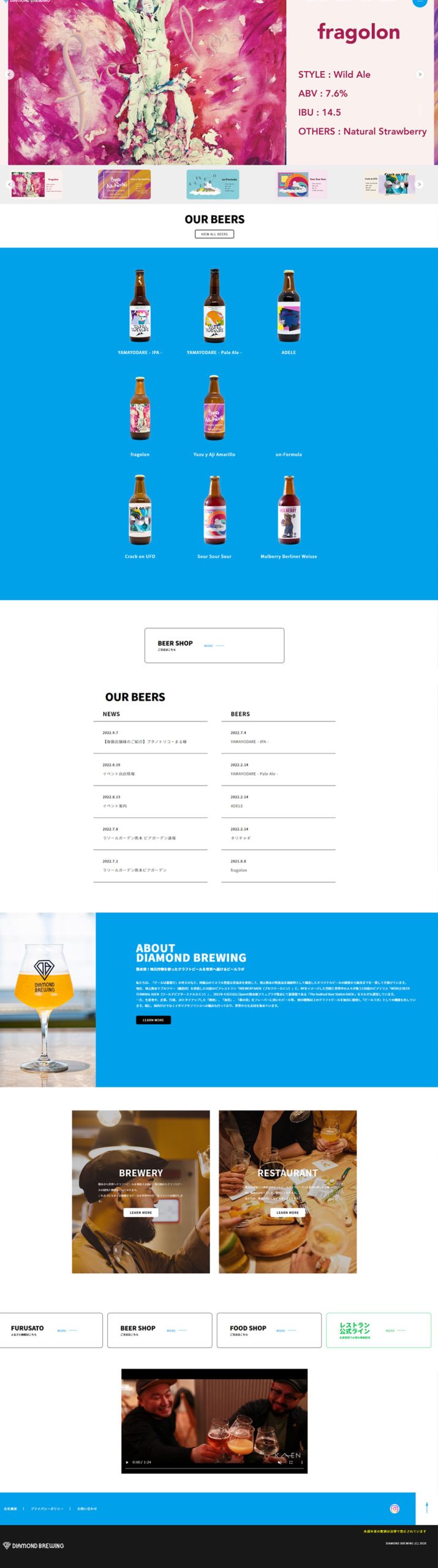 We created a corporate website for DIAMOND BREWING, a craft brewery in Kumamoto that produces craft beer using local crops. The site also has an e-commerce site, so we made sure to connect the site to their website.