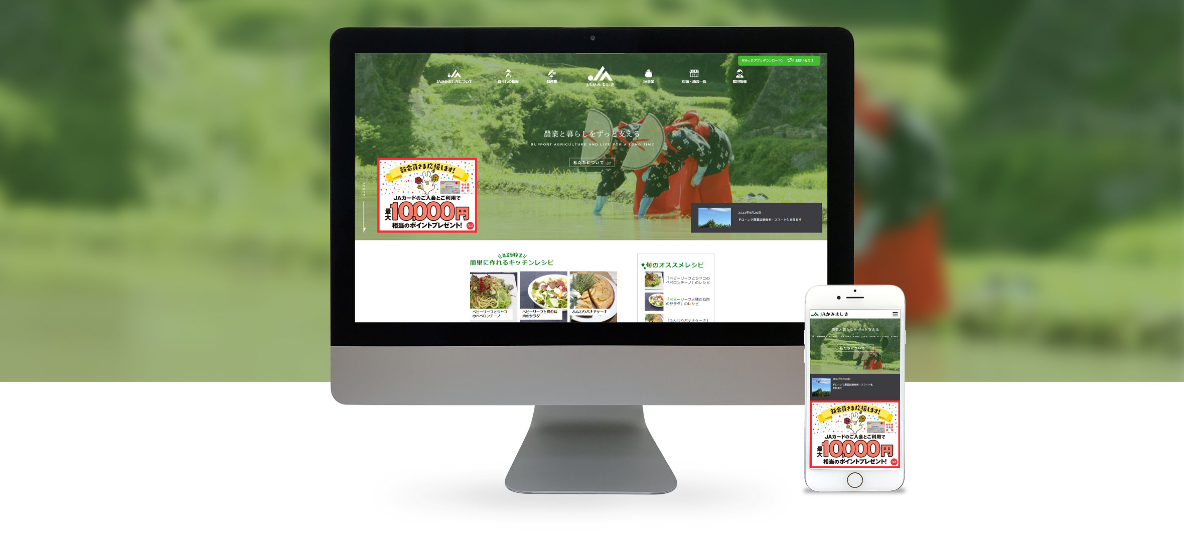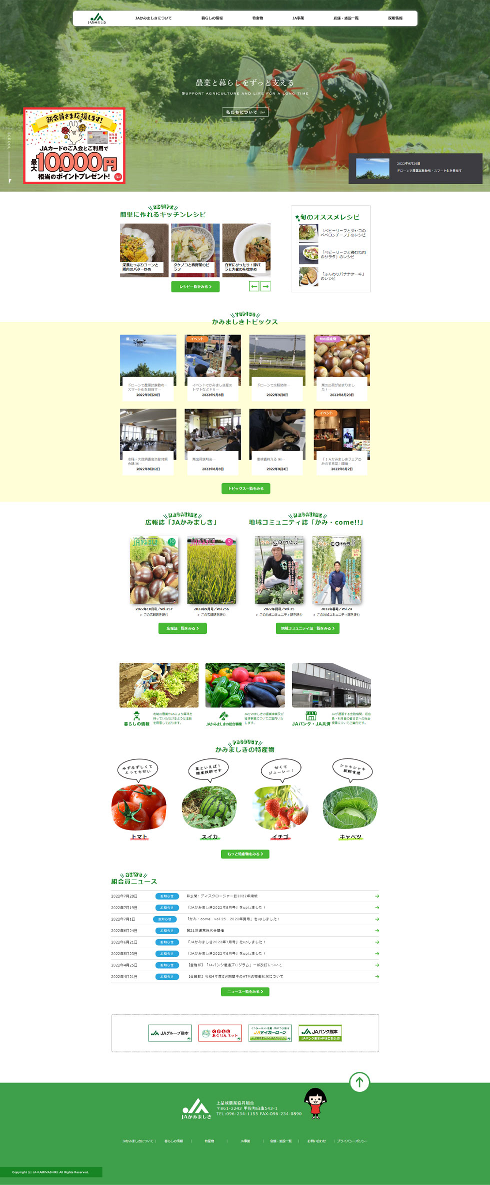 We produced a corporate website for JA Kamimashiki (Kamimashiki Agricultural Cooperative) in Kamimashiki Town, where a variety of agricultural products are produced. We created a website that attracts users of all ages by providing detailed information on seasonal vegetables, recommended recipes, and business activities.