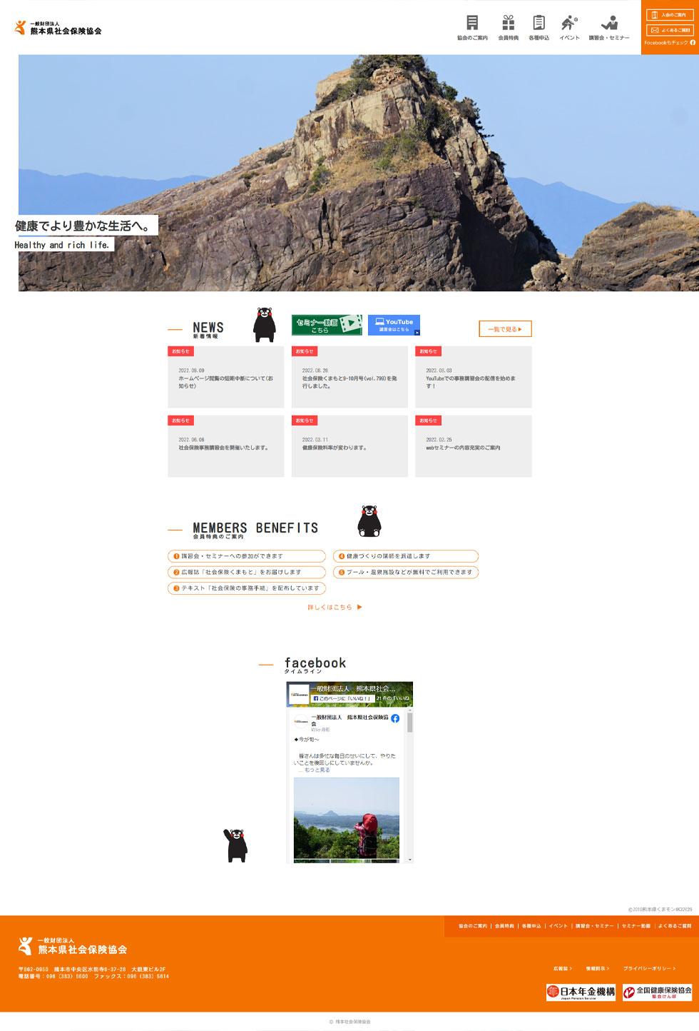 We created a corporate website for the Kumamoto Social Insurance Association, which has been promoting awareness of the social security system and expanding health and welfare programs. The site is designed to convey in an easy-to-understand manner the purpose of the Kumamoto Social Insurance Association, which is "to contribute to the smooth business operations of its members by promoting the social insurance system, and to further enhance various projects aimed at improving the health and welfare of the insured and their families at the business establishments.